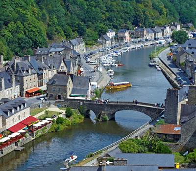 Dominant majestueusement l'estuaire de la Rance, cette cité médiévale des Côtes d'Armor a su préserver ses nombreux trésors architecturaux. À commencer par son château du XIVème siècle et ses remparts de 3 km qui veillent sur la vieille ville. Une balade dans les rues du vieux Dinan vous plongera en effet dans un autre temps. Maisons à pans de bois, demeures en étages à encorbellement, hôtels Renaissance, couvents et basilique Saint-Sauveur… Autant de témoignages du riche passé de cette cité. Une atmosphère médiévale qui se retrouve également dans la rue du Jerzual. Cette ancienne voie d'accès qui relie la ville haute au port, pavée et en pente raide, regorgeait de boutiques de tisserands, tanneurs, sculpteurs… Aujourd'hui encore, ses maisons à pans de bois abritent de jolis ateliers-boutiques d'artisans et d'artistes (souffleurs de verre, doreurs sur bois, graveurs…). Les amateurs de coucher de soleil gagneront le petit port de plaisance pour profiter des derniers rayons du soir, attablé Chez Laurette autour d'une bière et d'une planche de charcuterie ou de fromage. Le port constitue également le point de départ privilégié pour parcourir la Vallée de la Rance. Ses rives verdoyantes se découvrent à pied, à vélo (voie verte) ou en bateau lors d'une croisière allant de Dinan à Saint-Malo . Cette rivière, canalisée par une usine marémotrice depuis 1966, se jette dans la mer entre Dinard et Saint-Malo. Son estuaire est aujourd'hui un magnifique plan d'eau dont les rives abritent un patrimoine naturel et architectural varié qui vaut sacrément le détour. Enfin, Dinard permet de varier les plaisirs entre terre et mer avec Dinard et Saint-Malo accessibles en une demi-heure de route.